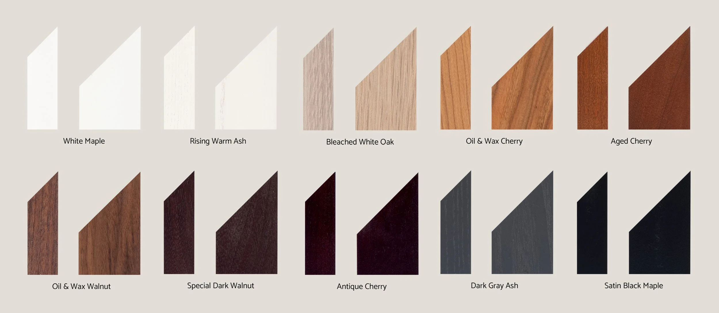 Our frames come in five species of 100% solid hardwood: Ash, Maple, Cherry, Oak, and Walnut, with a variety of colors to suit your style and decor.